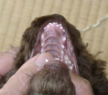 ねいちゃんたち みて みて あたしの くちのなか。 こんなに おおうつしで はずかしいけど いままで ひとに いわなかったんだけど はが にれつに はえてんの。 このあいだから とうさんが あたしの はを ぶらしで ごしごし してるんだけど きがつかなかったみたいよ。 そろそろ ししゅんきに はいったのよ こどもんときの はわ どっちだとおもう? そとがわかねえ そのうち けんしも おおきなのが でてくるよ。 また はえたら みてよね。 9月17日 モカ