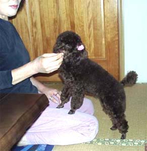 ねいちゃんたち しばらくね。 あたし あした びよういんに ゆくの。 たのしみよ。 いま きせつの くだものを くってんの。 へんしんまえの すがたよ。 このあいだも ねいちゃんの においをしたのを くったけどね。 そんで もう あしたに なったの。 びようの せいかをみせるわよ。 みて みて みてよ。